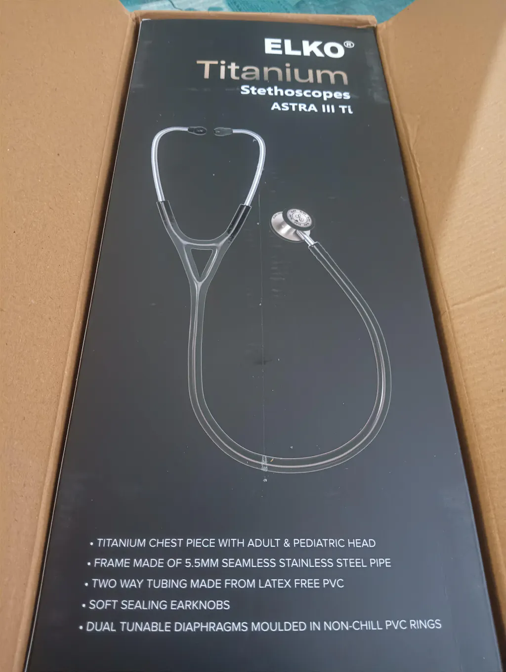 - Two-way Tubing: The ELKO ASTRA III Ti titanium stethoscope for medical professionals with two-way tubing is constructed from latex-free PVC, offering excellent sound transmission. Its unique design retains shape and flexibility even when tightly folded in a pocket, and it is resistant to staining.