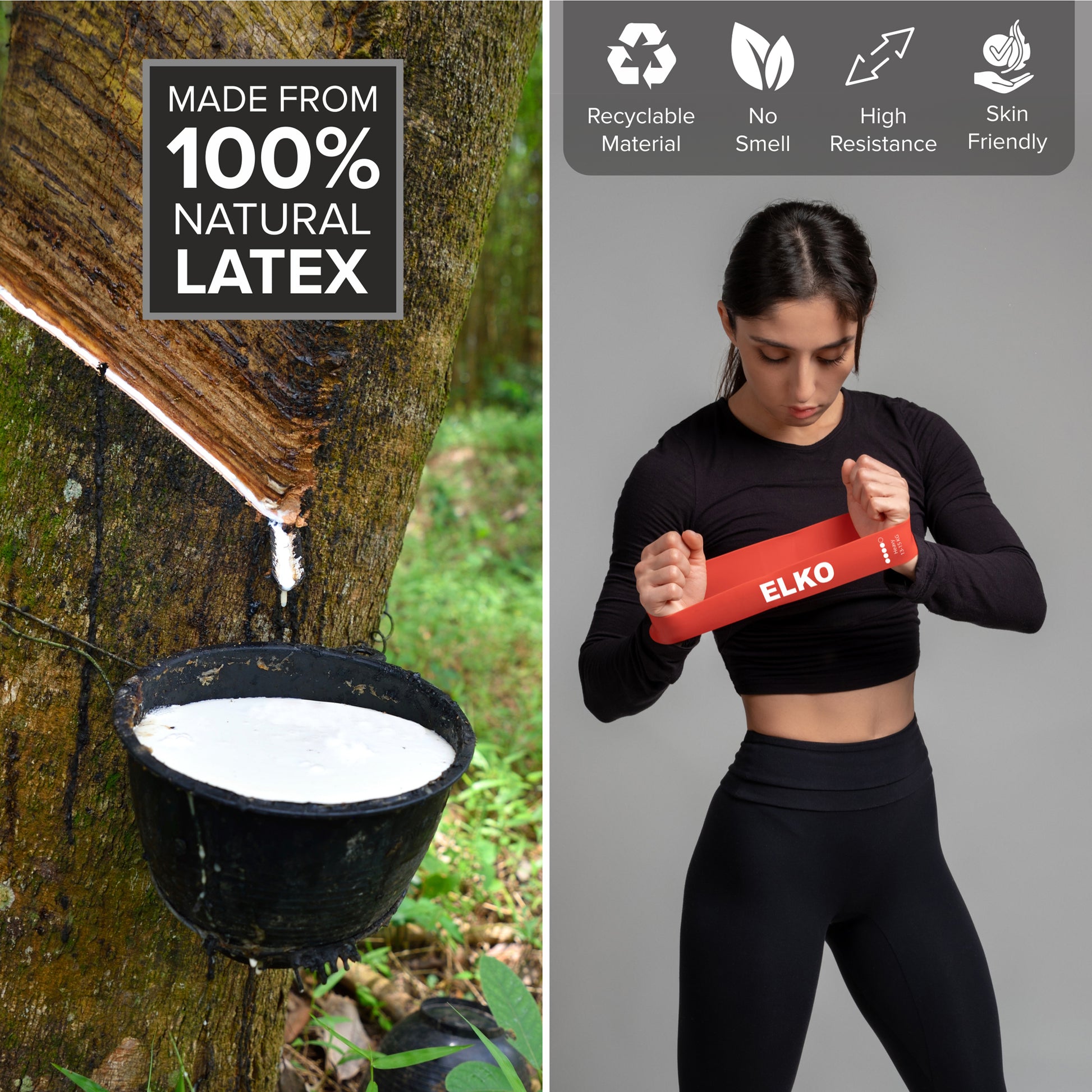 Made from 100% latex. Comes in 5 different resistance strength levels: X-Light, Light, Medium, Heavy and X-Heavy. They’re suitable for beginner or a seasoned workout sportsman.